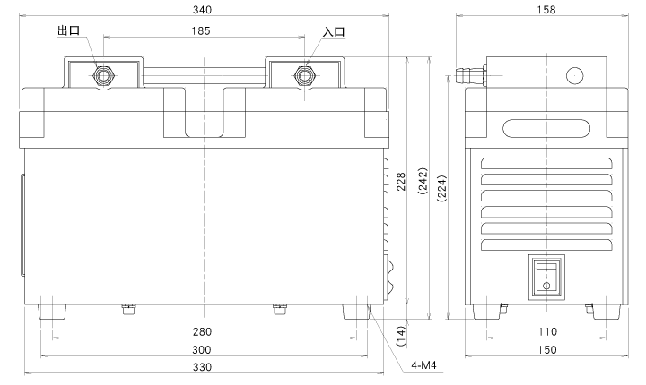 通过橡胶薄膜(膜片)的往复运动而排气的真空泵。 结构简单,易于操作。 DTC系列是高耐腐型。